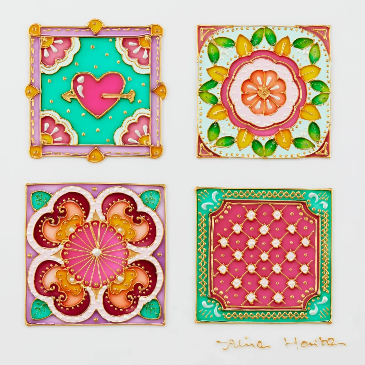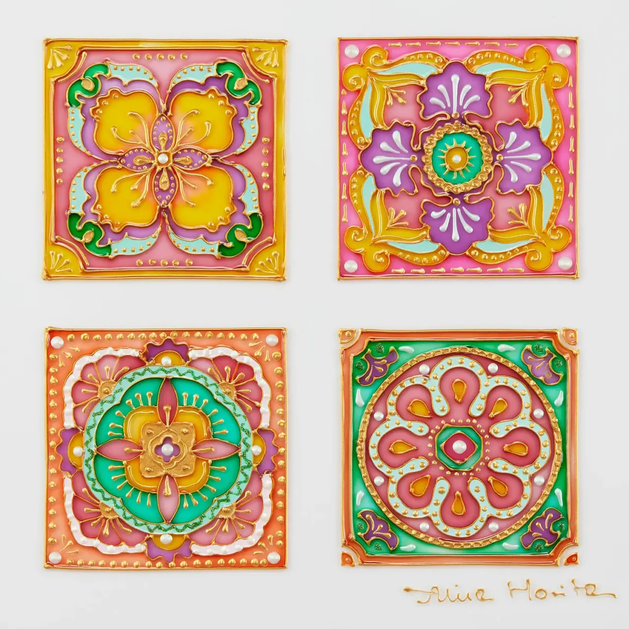 側面にはエンボス加工を施し、ぷっくりと浮かび上がるタイル模様がまるで本物の陶器のよう。アート作品のような完成度です。