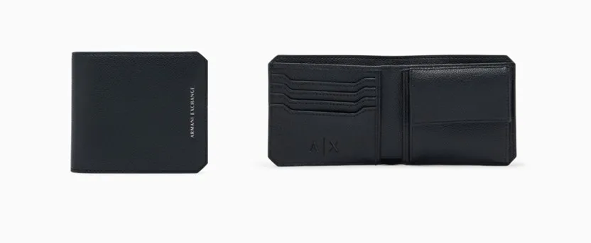フロントに配されたAXロゴがアクセントになった、モダンで洗練された三つ折りミニウォレット。無駄を削ぎ落としたデザインながら、幅広の紙幣コンパートメント、4つのカードスロット、コインパースを備えた実用性の高い仕様です。