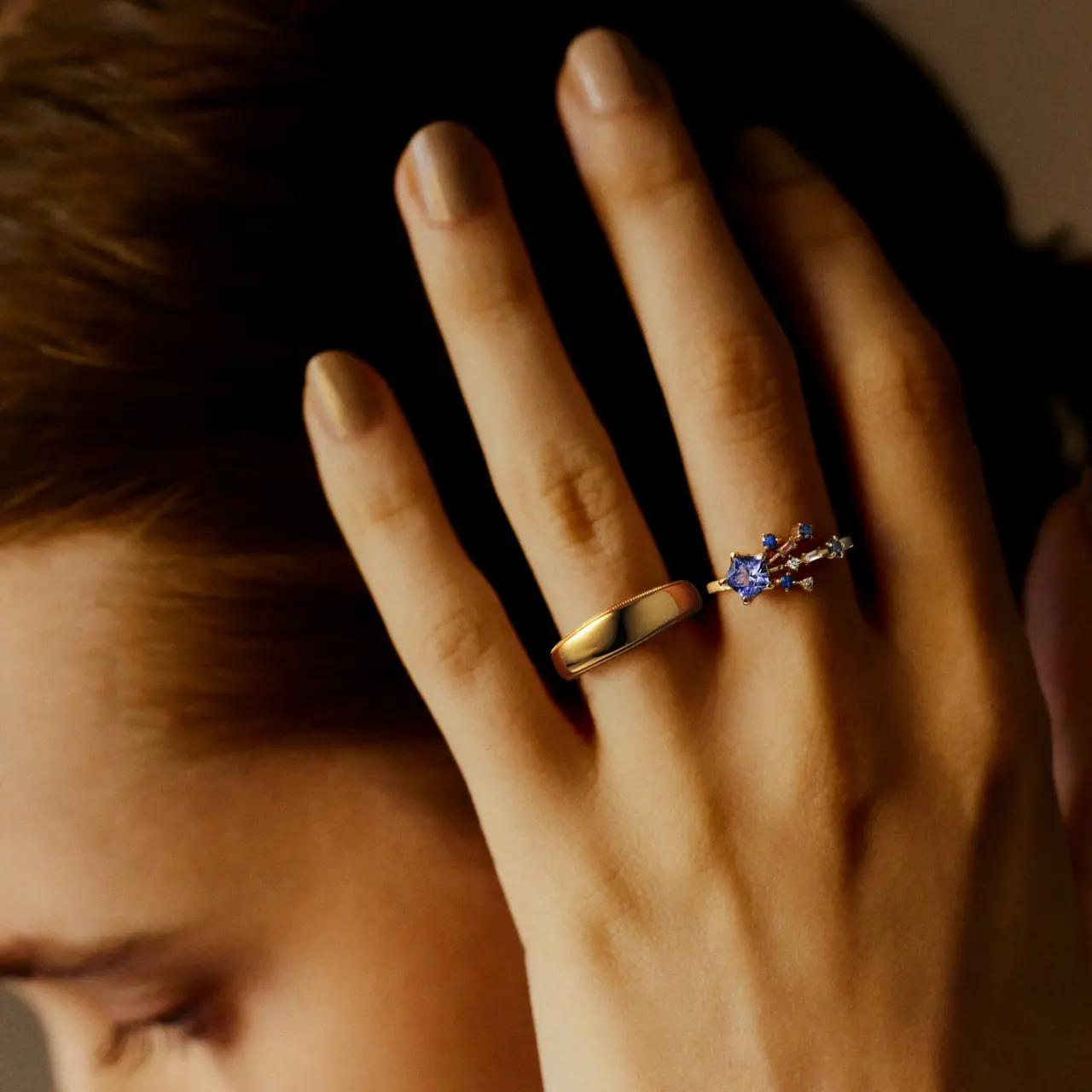 「ステラベル」は、幸せを自ら掴み取る大人の女性に向けたエールを込めたジュエリー。ペンタゴンカットの主石が放つ輝きに、ダイヤモンドやサファイアを組み合わせ、流れ星が軌跡を描くような繊細なデザインに仕上げています。石座の裏には星の透かし模様を忍ばせ、熟練の職人によるクラフトマンシップが光ります。