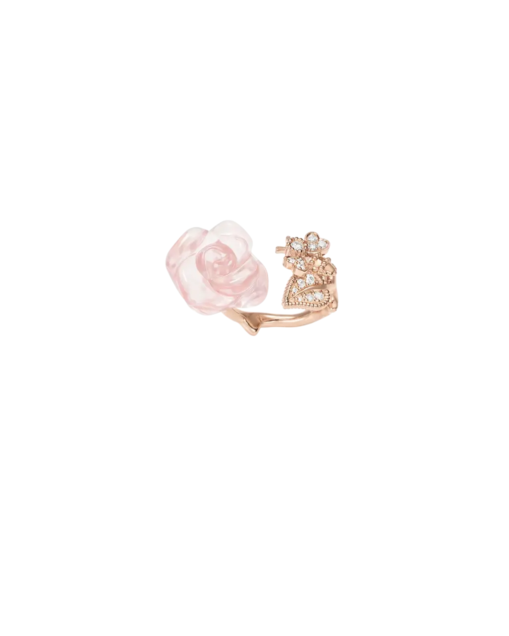 • ピンククオーツを職人が手彫りで薔薇の花に