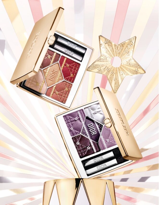 メゾンを象徴するカナージュとラッキースターをあしらったゴールドケースのアイシャドウ「ディオールショウ サンク クルール」は、2つの限定ハーモニーで登場。