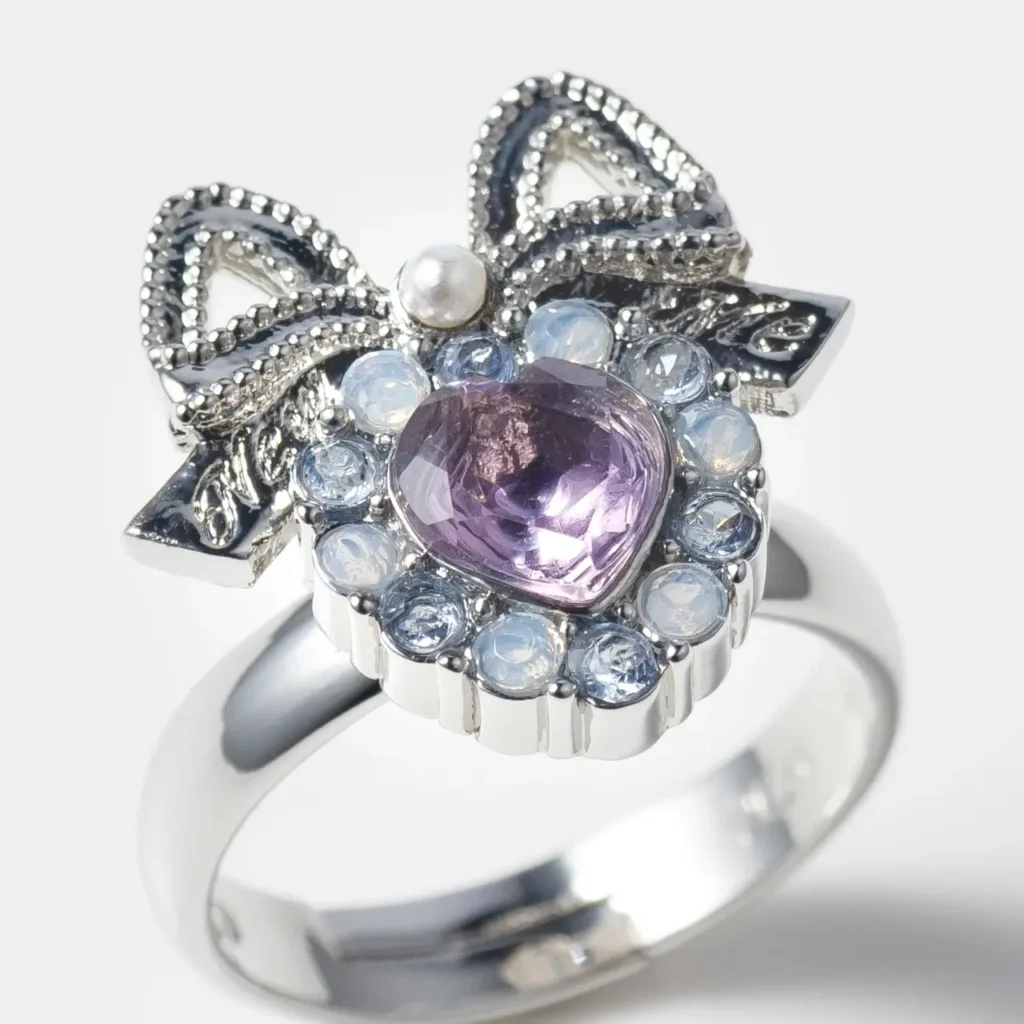 「Re:awaken(意識の再覚醒)」。直感を高めるといわれる天然石アメジストをあしらい、自分への誓いをそっと後押しする“お守りジュエリー”に仕上げた。