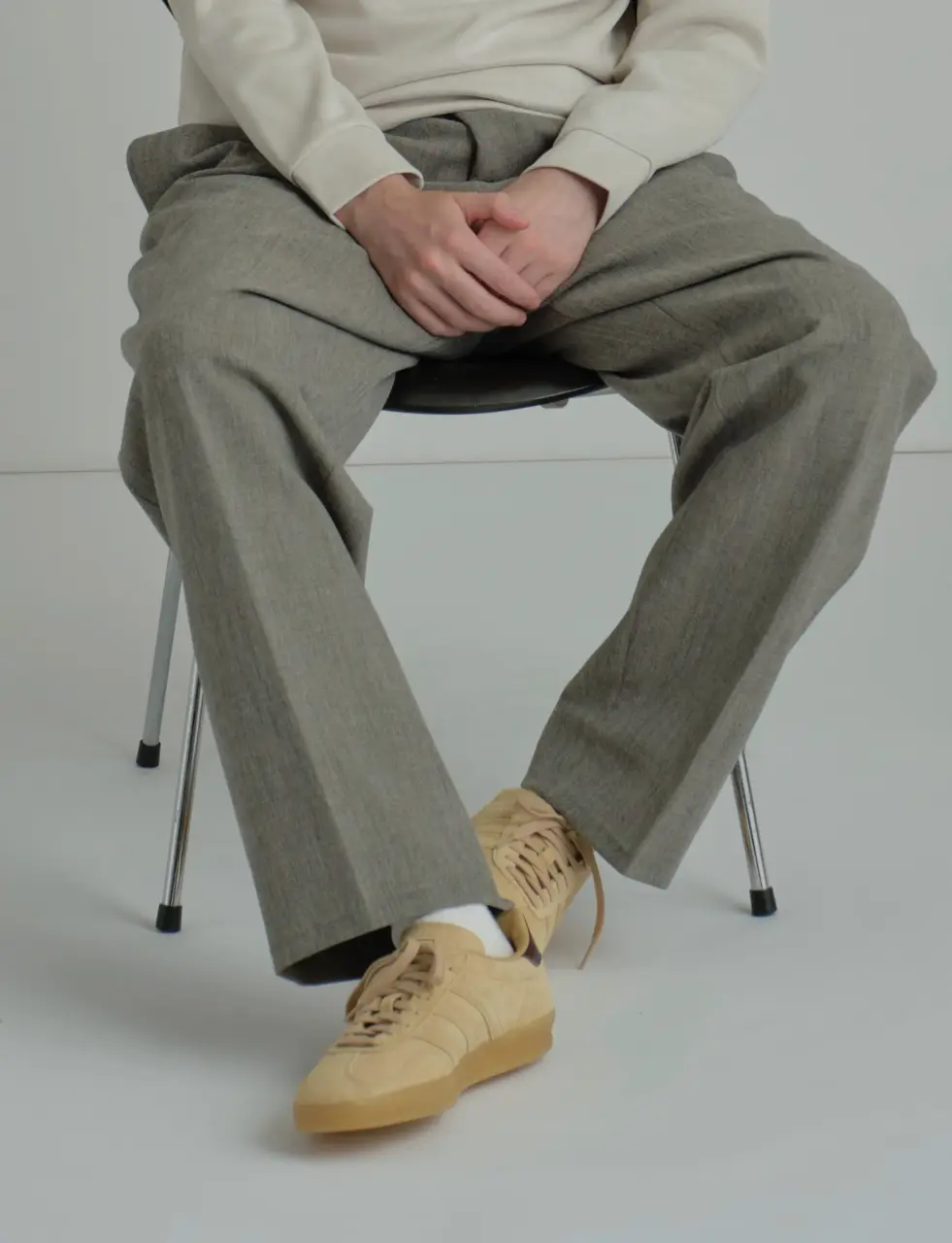 今回登場する「GAZELLE INDOOR」は、ベージュをベースにブラウンを差し色として取り入れた上品なカラーリング。柔らかくしなやかなスエード素材に、クラシックなガムラバーソールを組み合わせ、ヴィンテージ感と現代的なストリートスタイルを両立したデザインです。